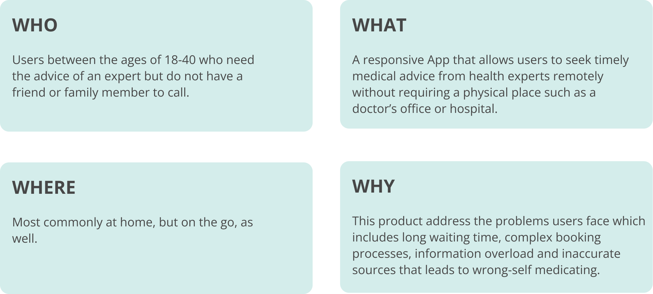 USER STORY: As a busy working mum of two, I want to quickly sign up and book a call to speak to a suitable health expert so I can get the right medical advice in the comfort of my home or on the go.
