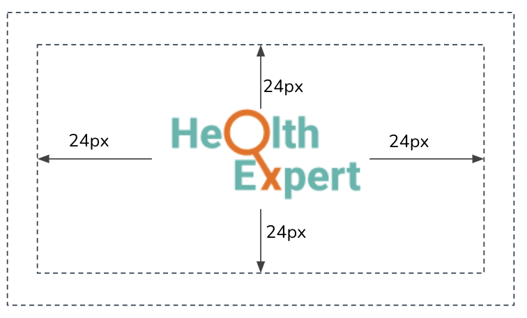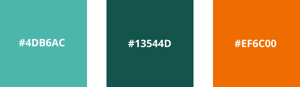 Minimum size: Heigh: 80px, Width: 180px, Text Roboto #4DB6AC / #EF6C00