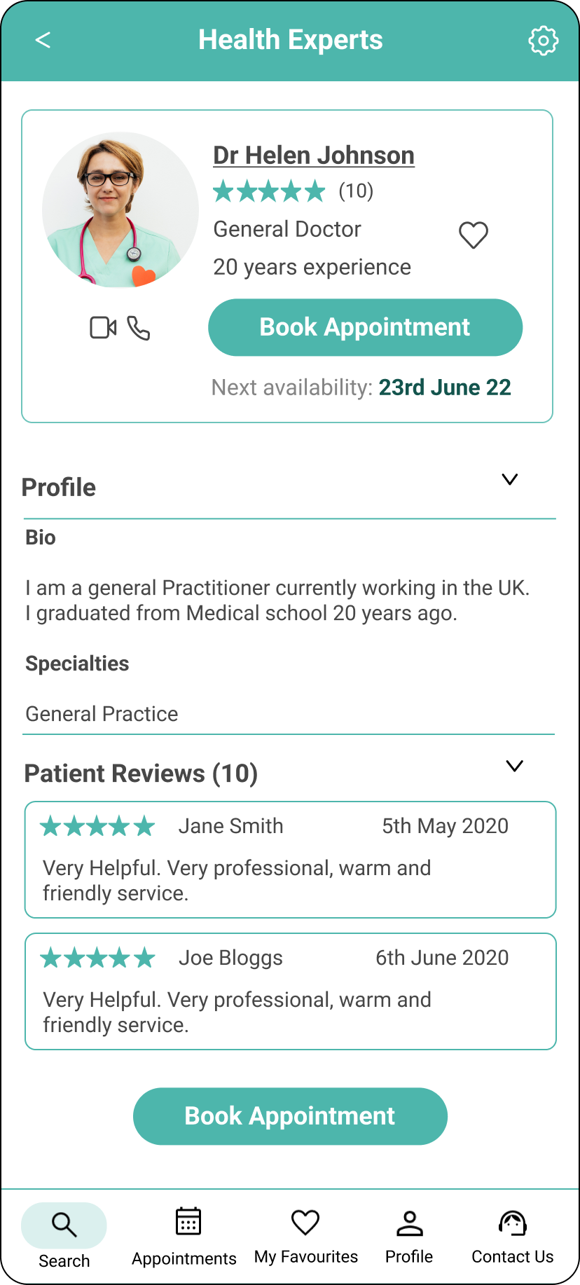 Health Expert app has many more iterations to go through, this is just the minimum viable product which goes over the basic features and functions. In future conduct more user interviews and do more research about how to make the app more personalised for the user. For example, on the home screen when the user login, they can see their upcoming bookings, recommended health resources based on their searches, most popular specialities, etc.