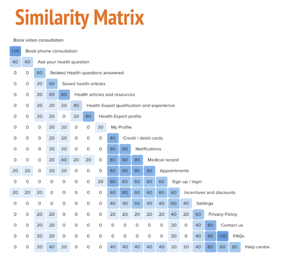 I then tested my findings by having participants complete a card sorting activity and displayed a similarity matrix.