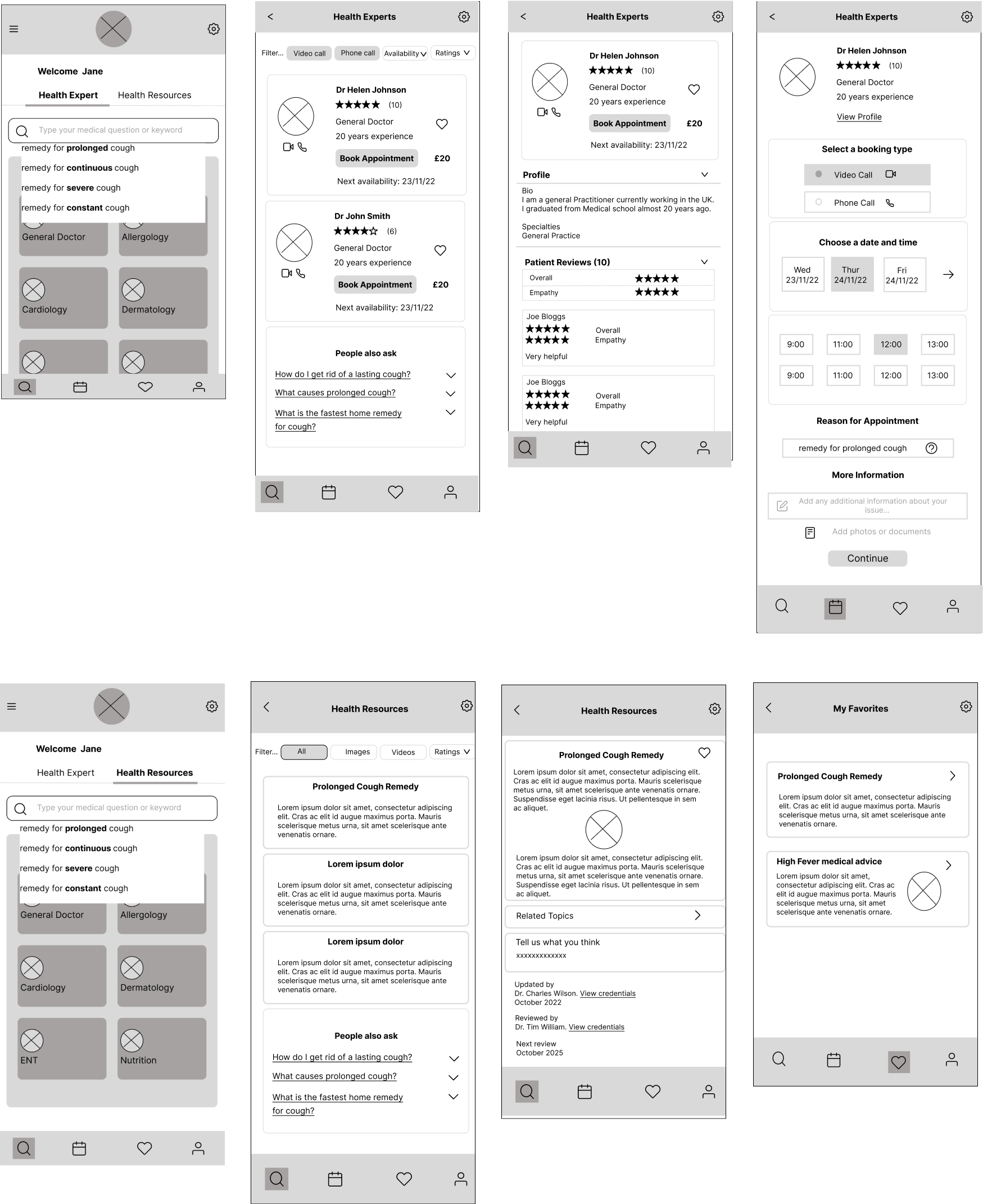 Before doing user research or ideation, I carried out competitive analysis of two health expert apps to understand their strengths, weaknesses and identify opportunities that I could use for my product in the marketplace.